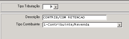 3. Altere o campo Tipo Tributação para o valor criado no item 1 (4 no nosso exemplo)