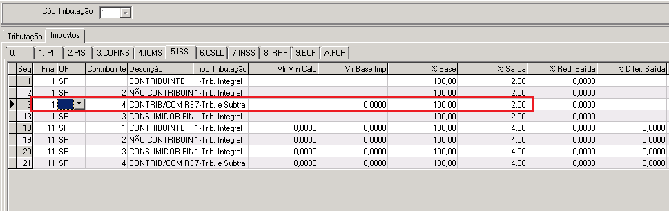 1. Contribuinte: Código tributação cliente (criado no item 1) - 4 no nosso exemplo