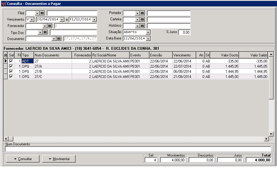 A tela de consulta de títulos exibirá os créditos disponíveis por adiantamento.