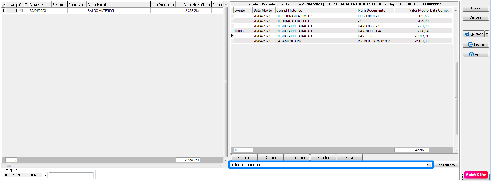 Ao clicar em Ler Extrato, os lançamentos que forem encontrados na conta com mesmo valor e vencimento serão automaticamente compensados.