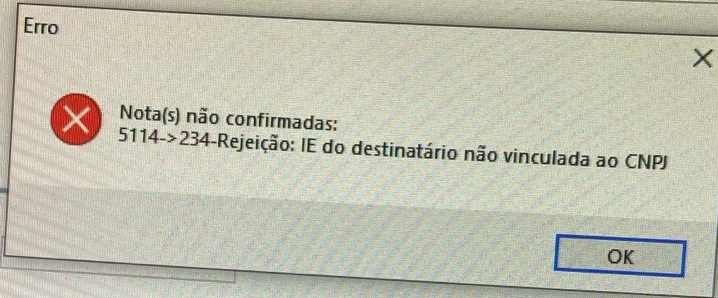 Rejeição ao Enviar NF: "IE do destinatário inválido" ou "IE do destinatário não vinculado ao estado" ou "IE do destinatário não vinculado ao CNPJ"