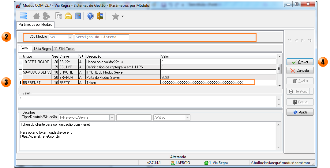 2. Informe o módulo SVC (Serviços do Sistema)